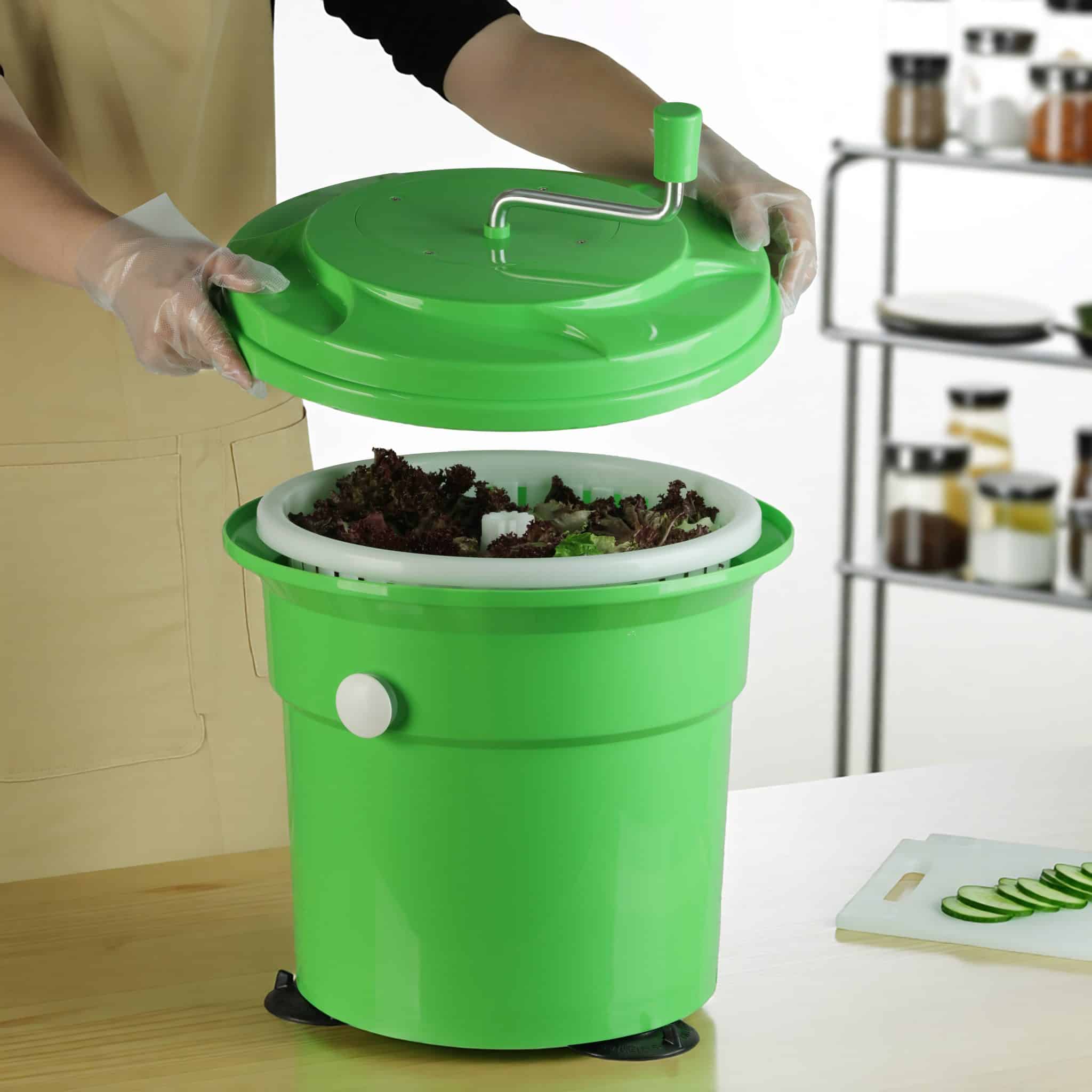 Simultaneously spin up to 3 different vegetables in this salad spinner.