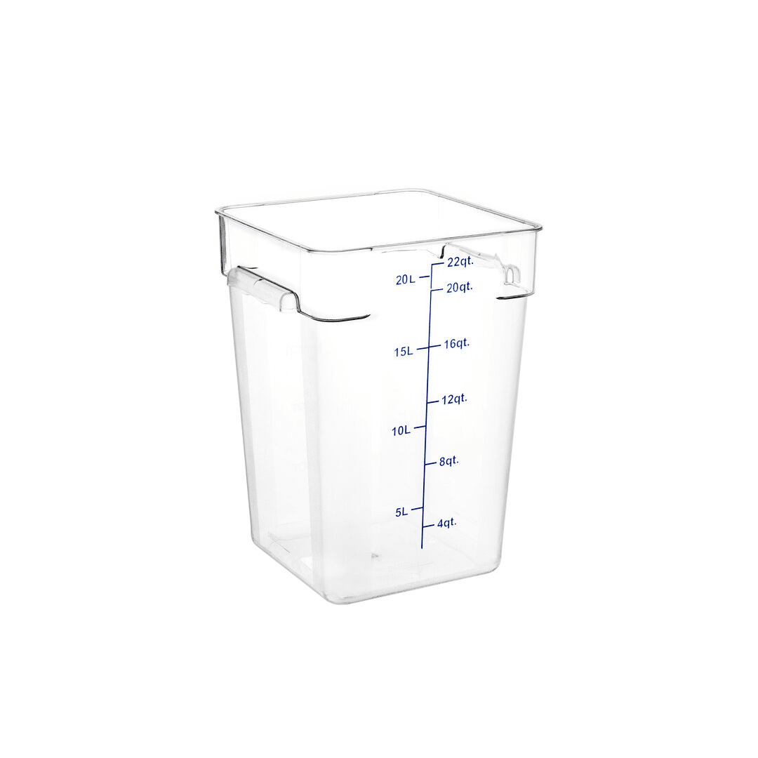 Its square design maximizes storage space by up to 25% compared to round containers, while the virtually unbreakable polycarbonate body guarantees durability and safety in busy kitchens.