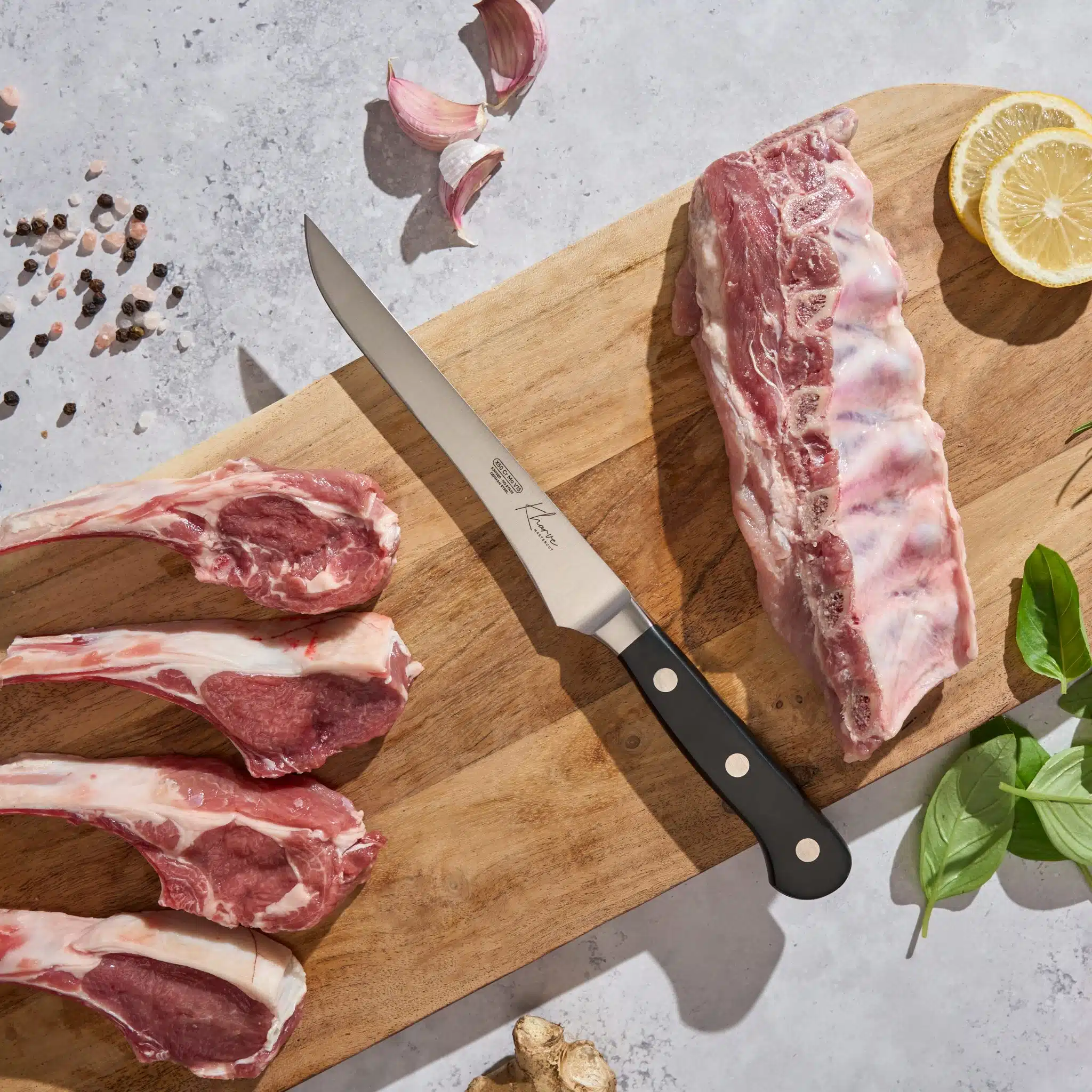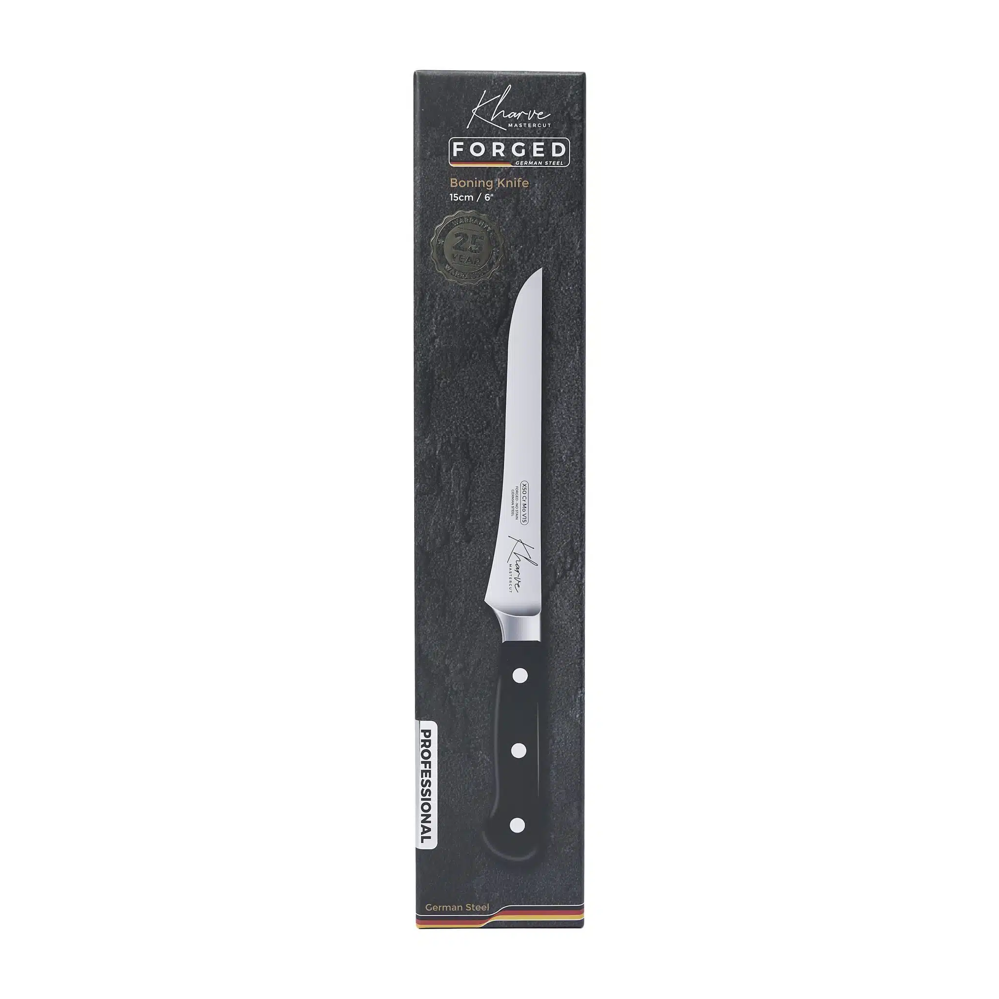 The KH Kharve® Master-Cut 15cm Boning Knife Straight & narrow blade for precise bone removal and filleting.