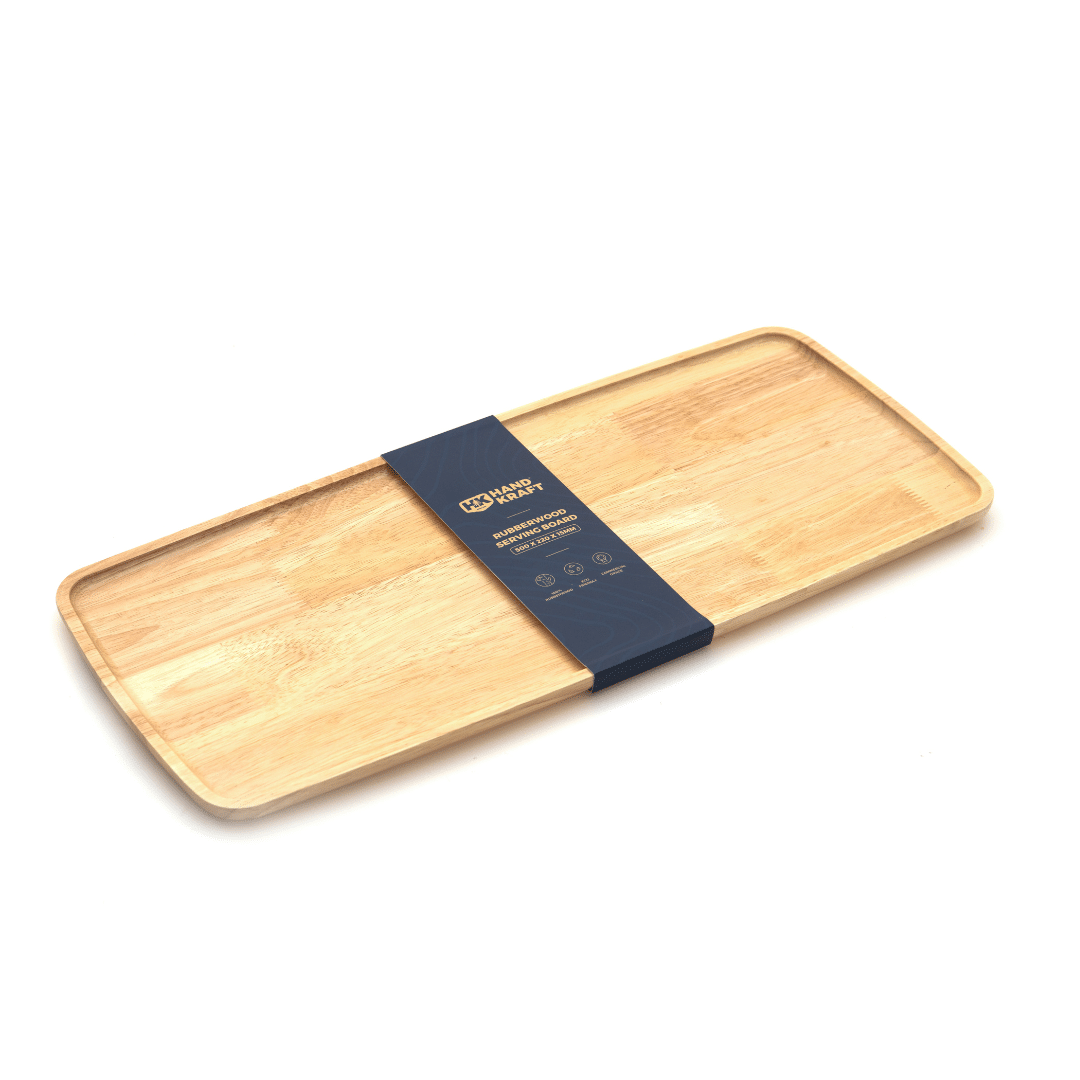 KH HandKraft® Rubberwood Serving Board is crafted from durable, eco-friendly acacia wood, this tray combines strength with natural elegance to elevate any dish.